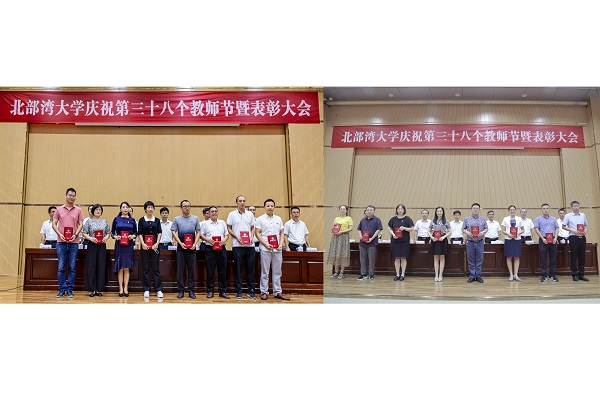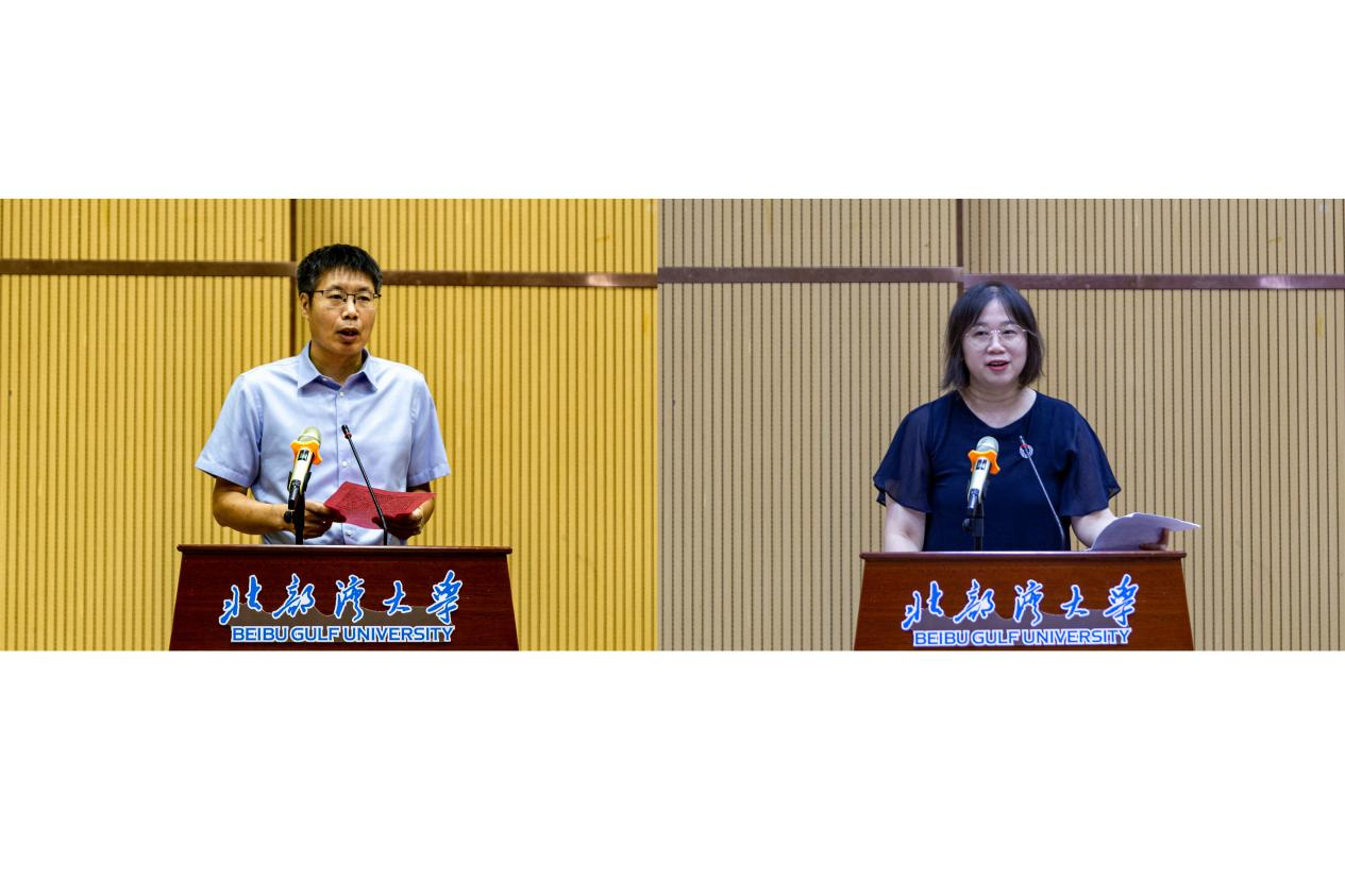 会上,陈锦山宣读2020-2021年度北部湾大学优秀教师、先进教育工作者的表彰文件以及2021年至今在教学科研等领域我校获奖教师名单。学校领导分别为优秀教师和先进教育工作者颁奖。