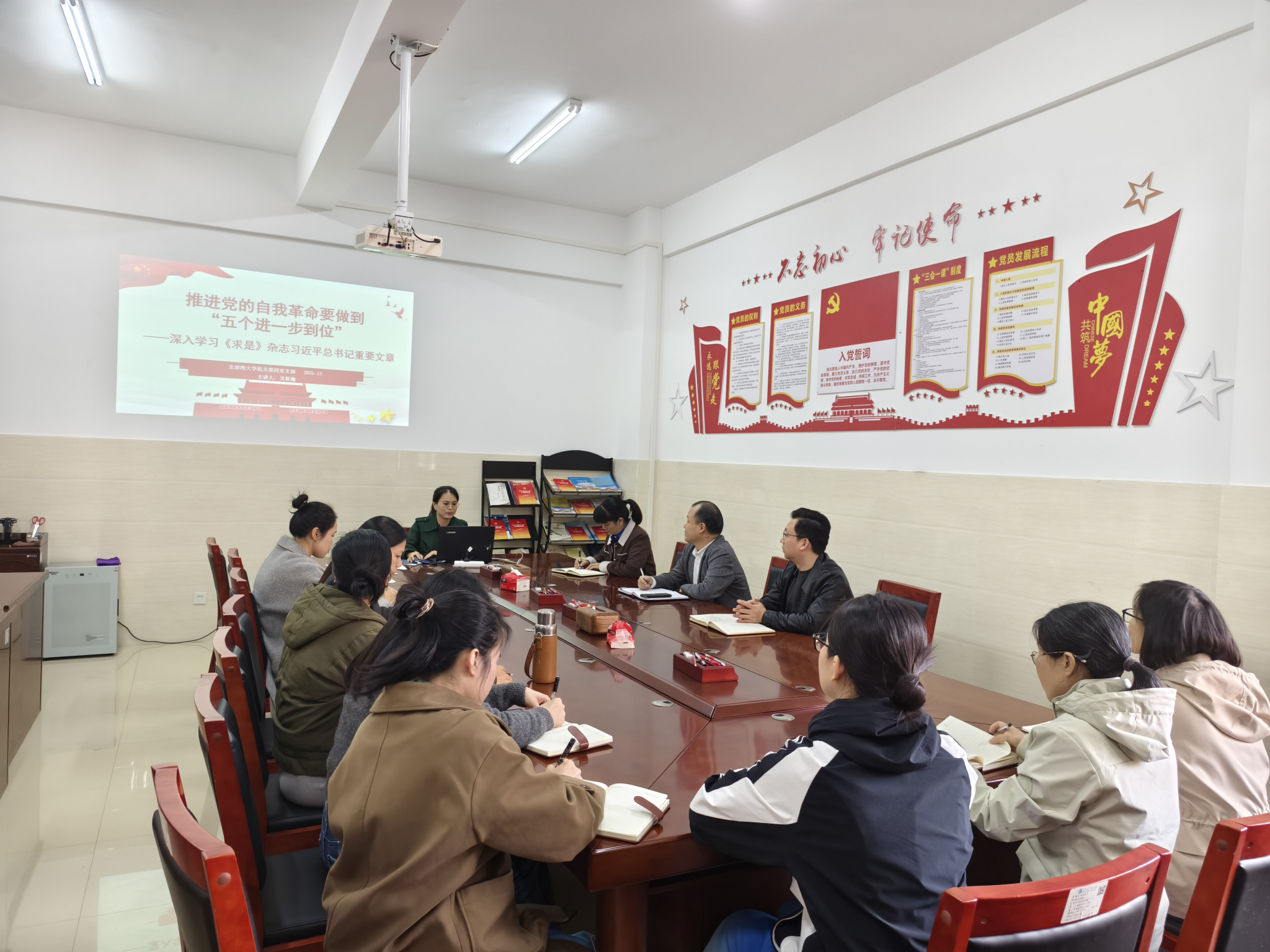 本次学习围绕四个重点议题展开:一是认真学习《求是》杂志刊发的习近平总书记重要文章《推进党的自我革命要做到“五个进一步到位”》,深刻领会新时代新征程推进全面从严治党的新要求;二是研读《求是》杂志最新刊发的《因地制宜发展新质生产力》一文,准确把握高质量发展背景下推动创新驱动、优化人才支撑的战略部署;三是深入学习在纪念胡耀邦同志诞辰110周年座谈会上的重要讲话,缅怀老一辈革命家的崇高风范,赓续红色血脉、砥砺初心使命;四是传达学习习近平总书记在中共中央政治局第二十三次集体学习时的重要讲话精神,聚焦健全网络生态治理长效机制,强化意识形态阵地建设。