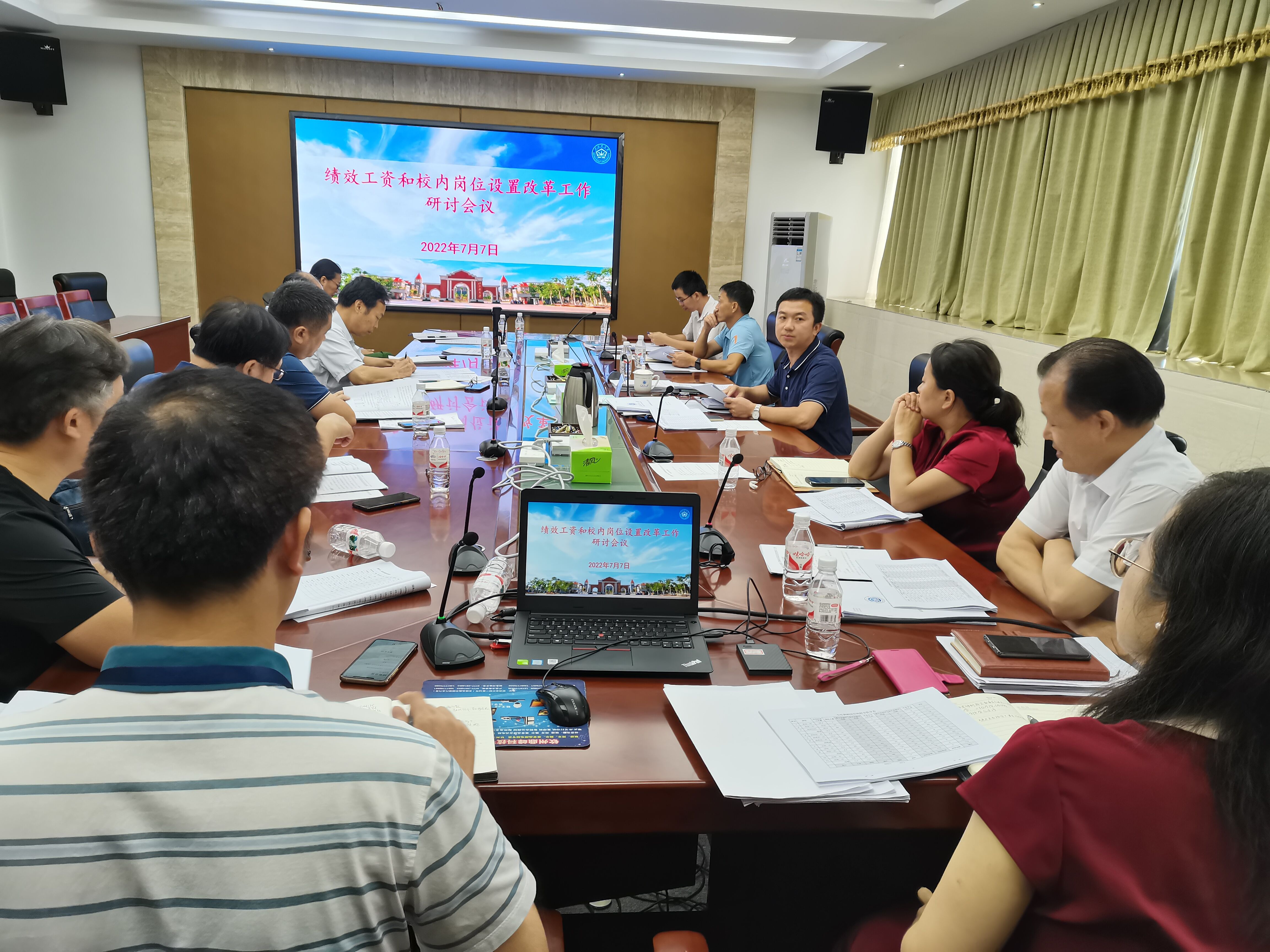 为推进学校绩效工资和校内岗位设置改革工作,2022年7月7日上午,学校组织召开2022年绩效工资和校内聘岗设置改革工作研讨会议。学校党委常委、副校长陈磊主持会议,人事处、教务处、科技处及海洋学院、经济管理学院等七个教学单位负责人参加了会议。