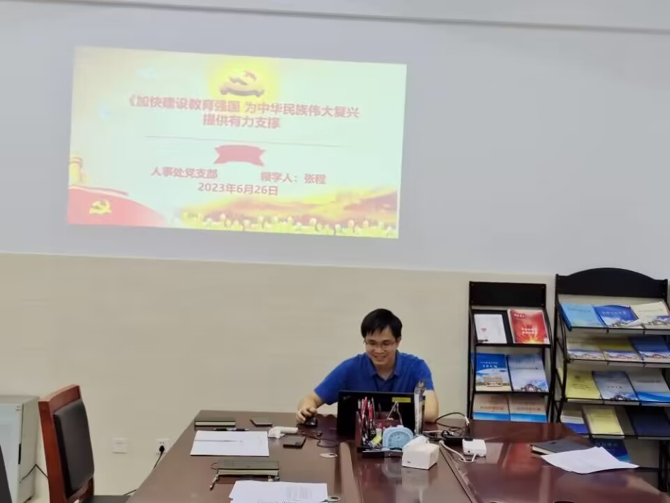 2023年6月26日下午,人事处党支部在行政楼420会议室开展6月支部活动,由党支部书记朱芳阳同志主持,支部全体在校党员参加活动。