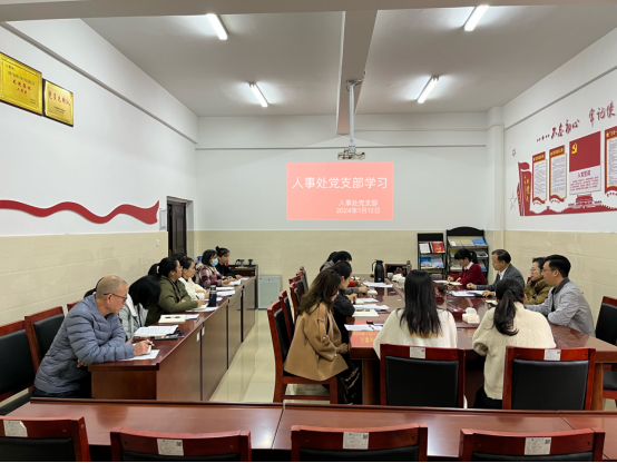 2024年1月12日上午,人事处党支部在行政楼420会议室召开2024年1月党支部学习会议,会议由党支部书记朱芳阳同志主持,人事处全体人员参加。