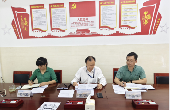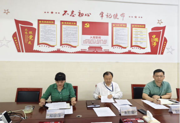 党支部书记朱芳阳(中)主持会议并领学《中国共产党纪律处分条例》