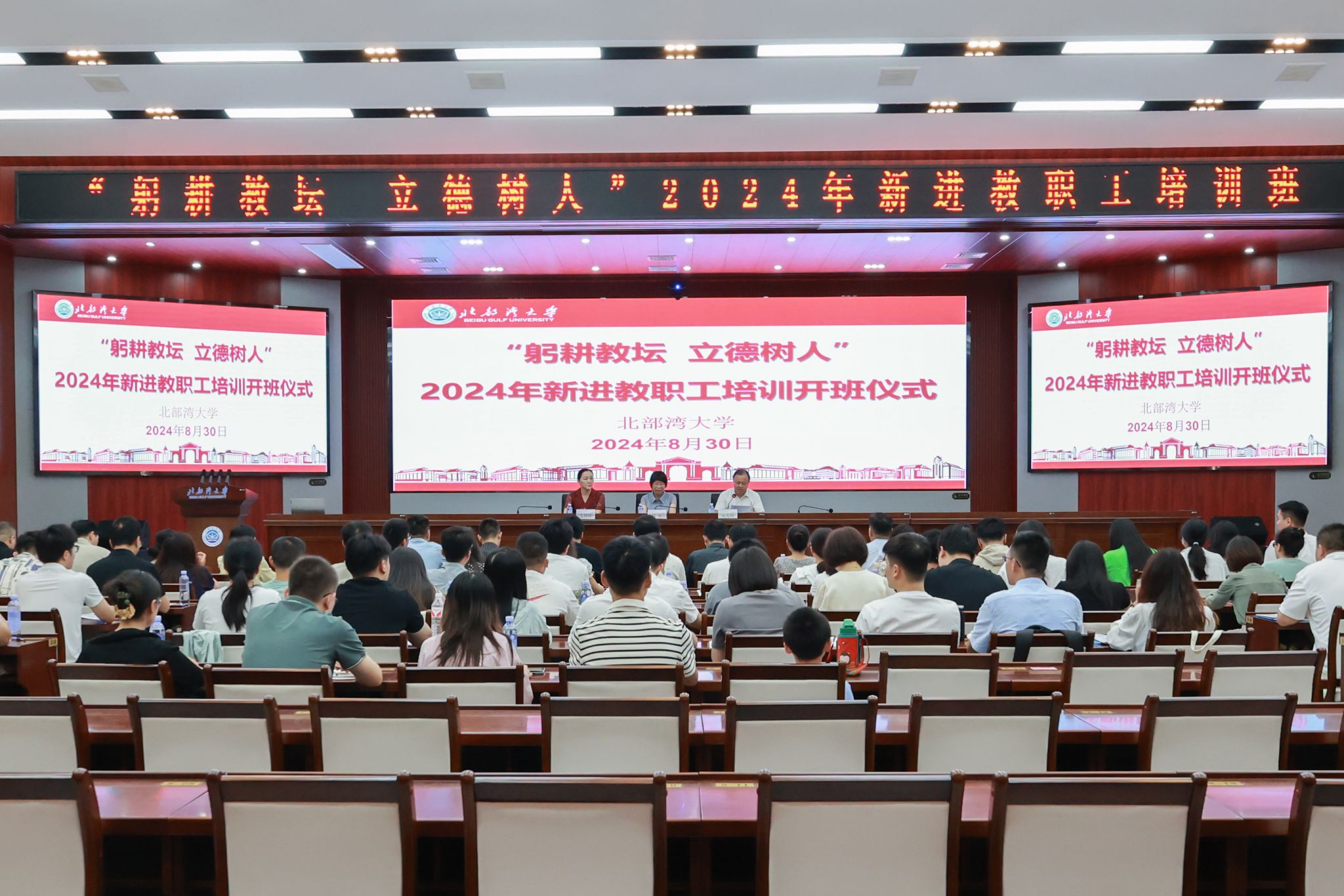 8月30日至9月1日,学校在办公楼一楼报告厅为98名新教职工举办入职培训。校党委书记徐华蕊,校党委副书记、校长苗剑,校党委副书记唐高华,自治区纪委监委驻北部湾大学纪检监察组组长、校党委常委、纪委书记谢立平,副校长尹艳镇及有关职能部门负责人分别作专题报告。校党委常委、副校长陆衡出席开班仪式。