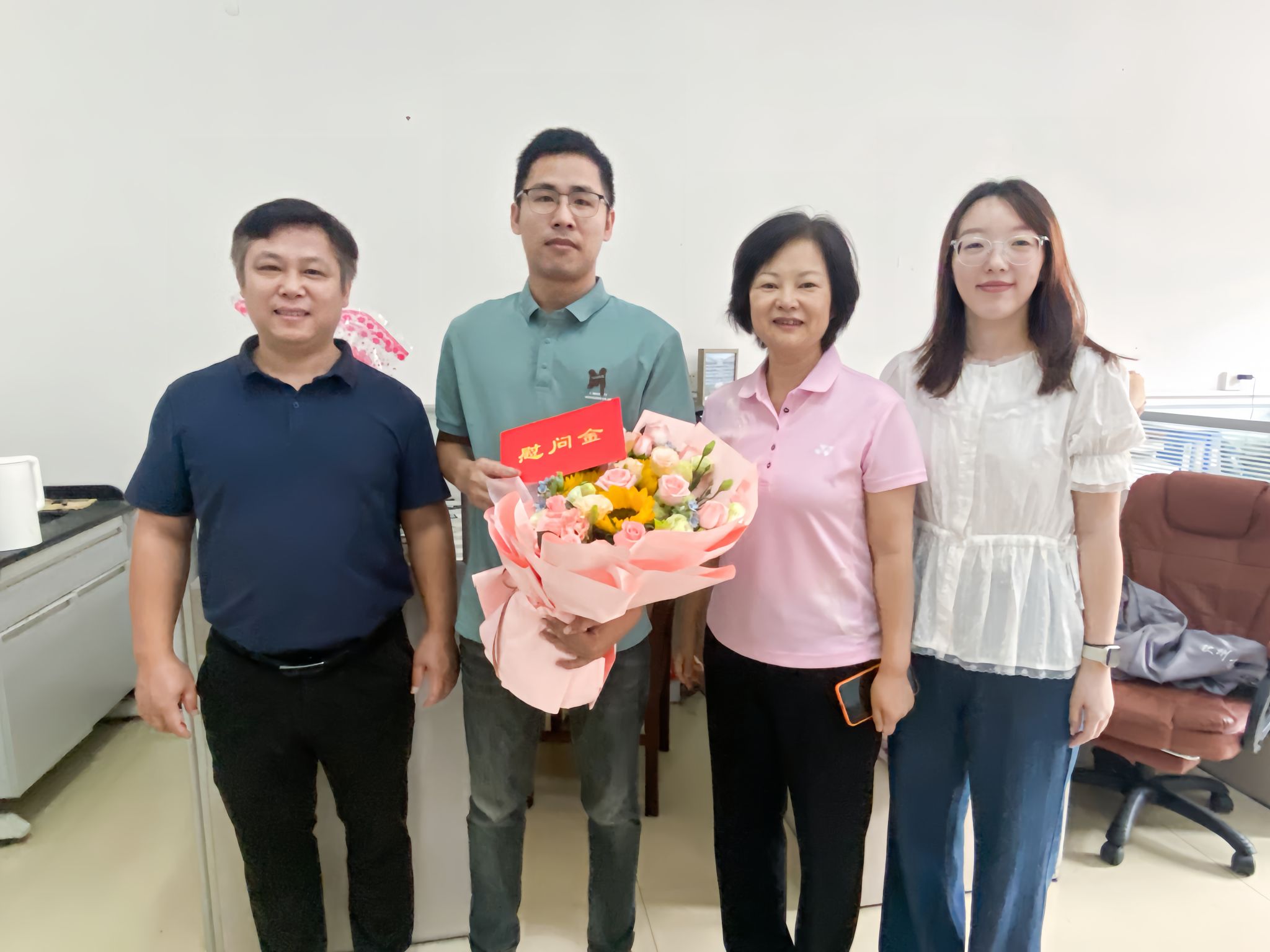 校党委常委、副校长陈丹(右二)看望慰问海洋学院一线教师代表