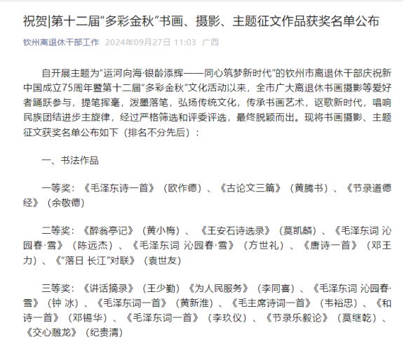 据悉,我校退休教职工裴仁伟撰写的《“吃”的沧桑巨变》和张蔓燕撰写的《家国情怀》两篇主题征文作品荣获钦州市第十二届“多彩金秋”主题征文比赛二等奖。
