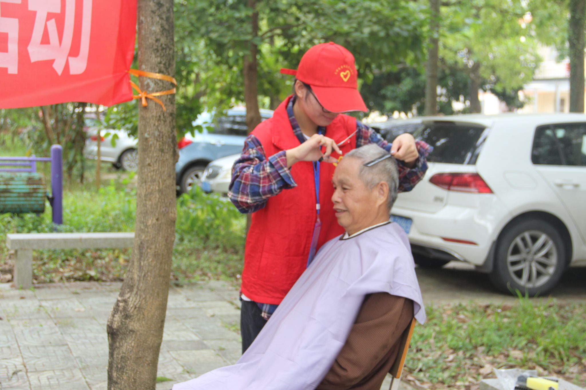 志愿者为老年人理发