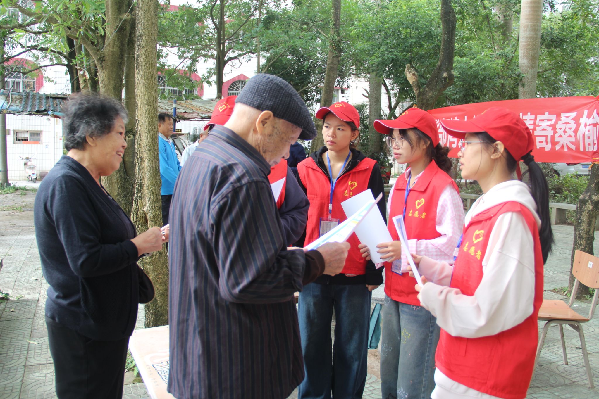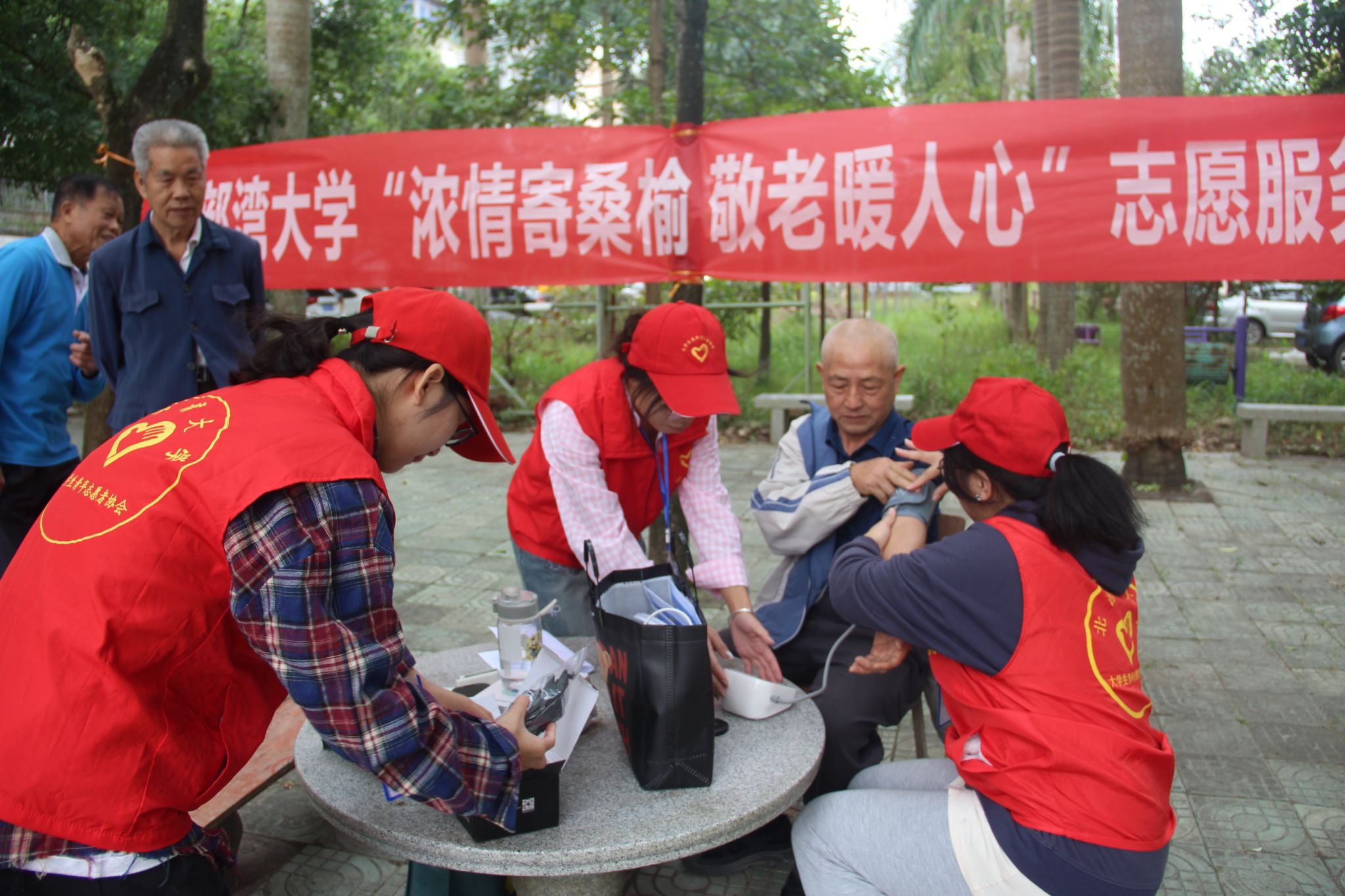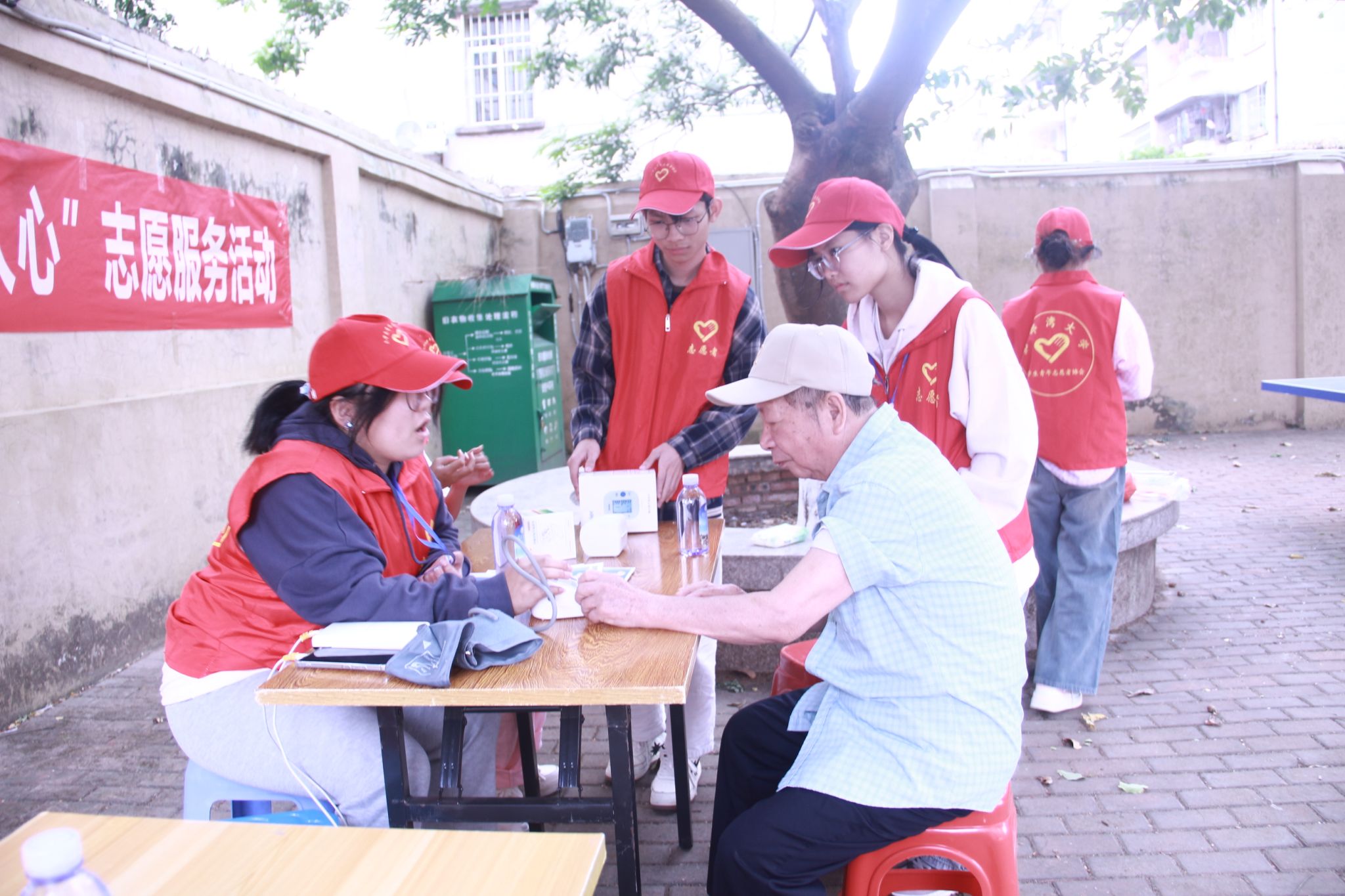活动当天,学校青年志愿者协会的志愿者们早早来到小区,分成几个小组,负责不同的服务项目。有的检测血压,有的教老年人使用手机,有的进行防诈宣传,有的为老年人理发。志愿者们还与老人们围坐一起,倾听他们讲述自己的工作和生活阅历,爱与关怀的纽带在志愿者与老年人之间紧紧相连。