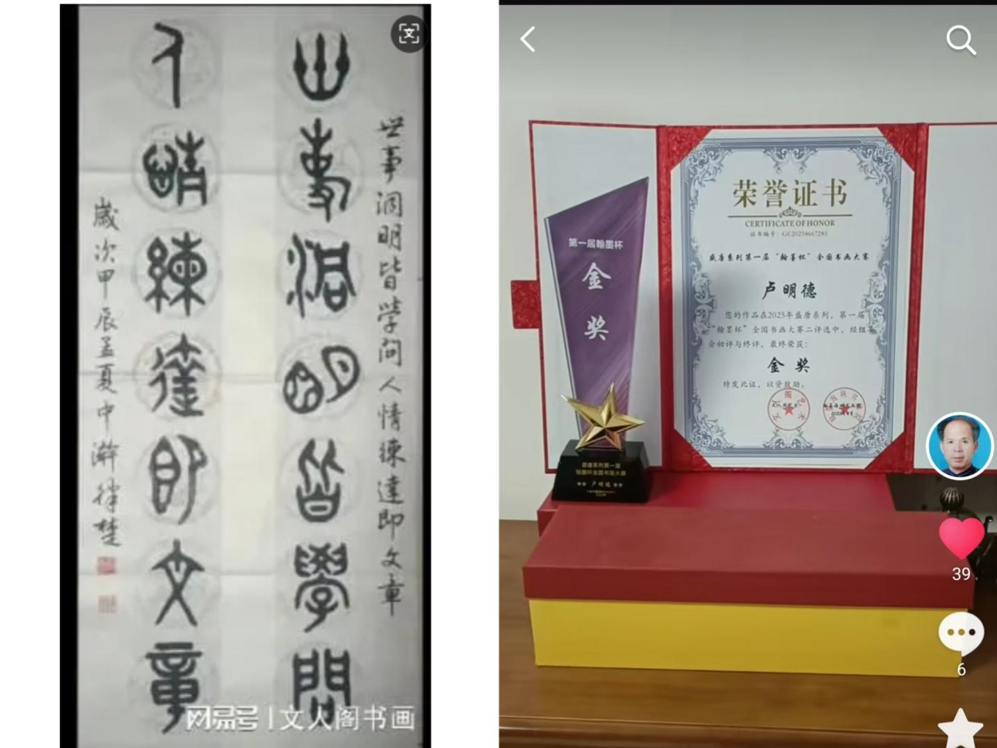卢明德老教授在教育、学术、书画艺术等多个领域有着杰出表现。此次大赛的荣誉,不仅见证了他在书画艺术领域的深厚功底与不懈追求,也彰显了他为社会发展与文化传承做出了积极贡献。