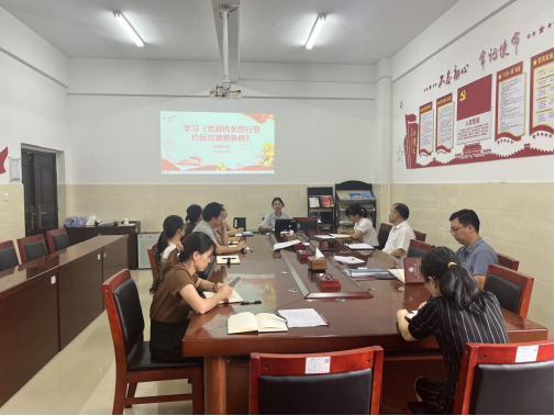 首先,归妙玲同志作为领学人,带领全体党员深入学习《党政机关厉行节约反对浪费条例》十一章六十三条核心内容,并结合公职人员违规吃喝认定标准、违反中央八项规定精神典型问题及案例,为全体党员敲响警钟。