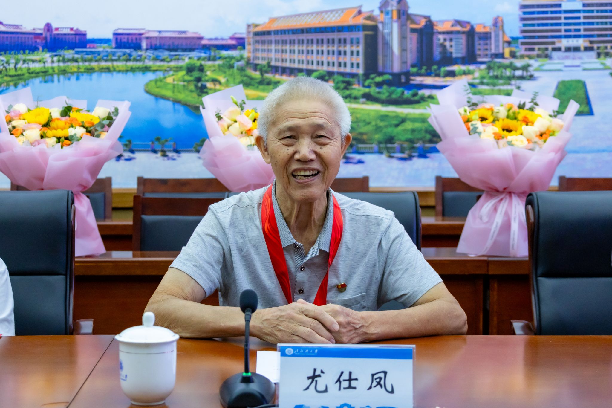 纪念章获得者代表尤仕凤和退休教职工党委委员林加全先后发言。他们结合个人经历,深情回顾了与党同心、与校同行的几十载春秋岁月和奋斗历程,表示将继续发挥余热,为学校高质量发展贡献力量。