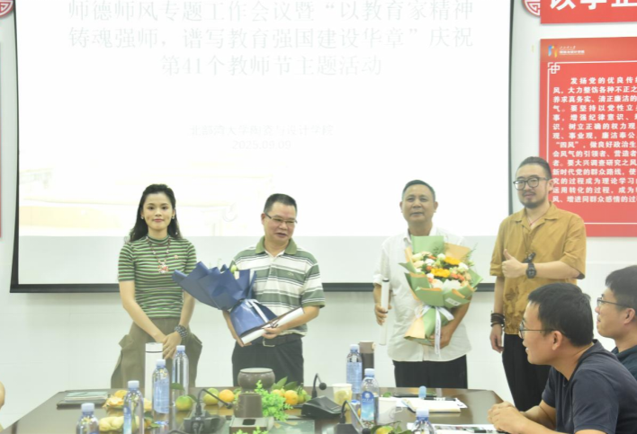 教师节前夕,2025年9月9日下午,学院在3-301会议室召开2025年全体教职工师德师风专题工作会议,开展庆祝41个教师节主题活动。2025年教师节主题是“以教育家精神铸魂强师,谱写教育强国建设华章”,会议向全体教师致以节日的诚挚祝福,号召大家弘扬优良师德师风,共同推进学院各项事业高质量发展。学院全体教职工参加会议,会议由学院党委书记古雅峰主持。