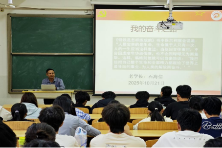 为使2025级新生深切感悟学院精神,科学规划大学生涯,10月21日下午,我院于12-504教室举行“我与学校共成长”新生主题讲座。学院德高望重的老院长石海信教授应邀重返讲台,为全体新生带来了一场内容丰富、启迪深刻的分享。讲座现场座无虚席,气氛热烈。