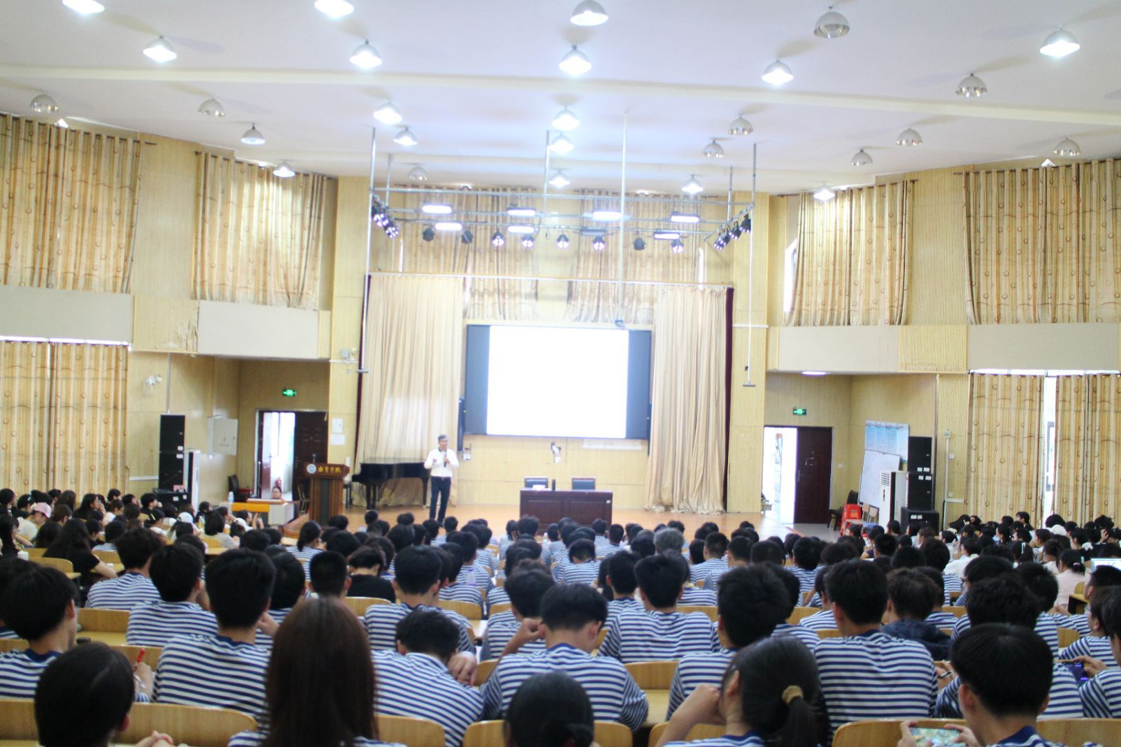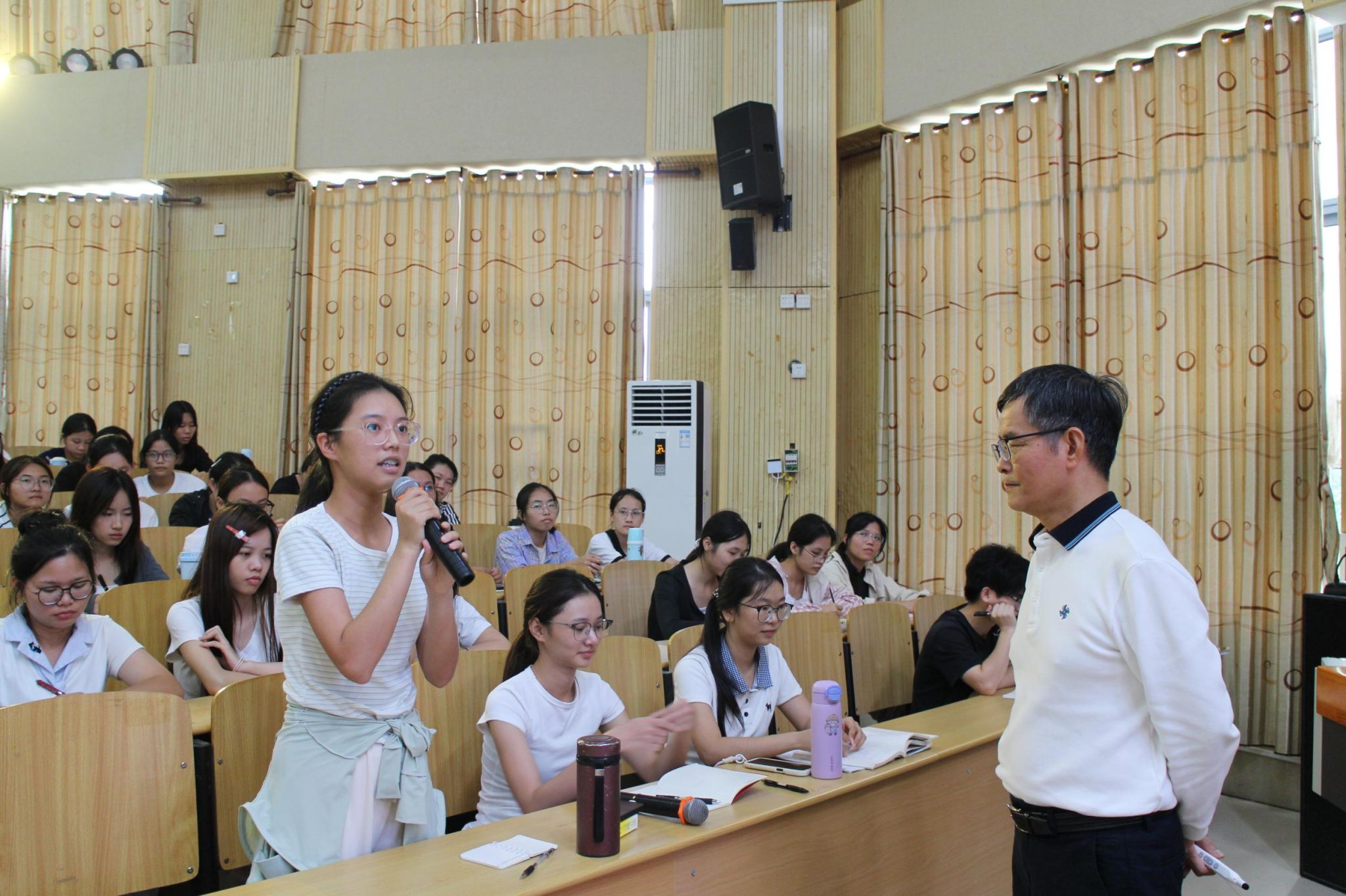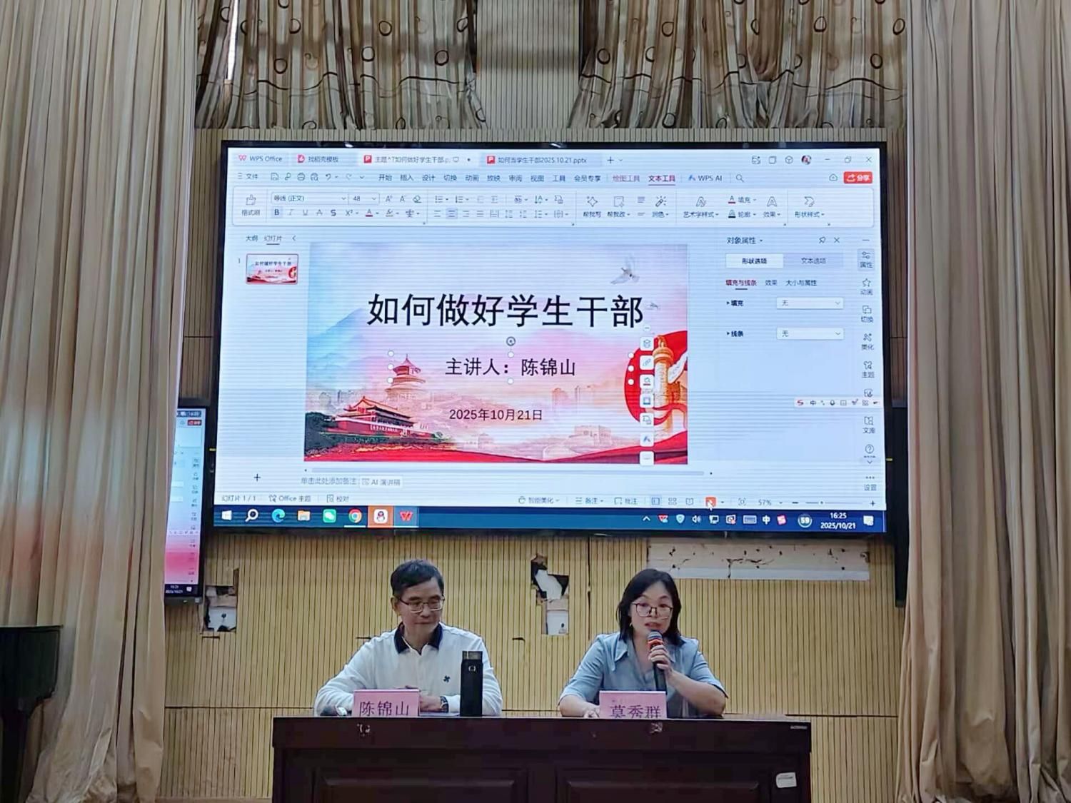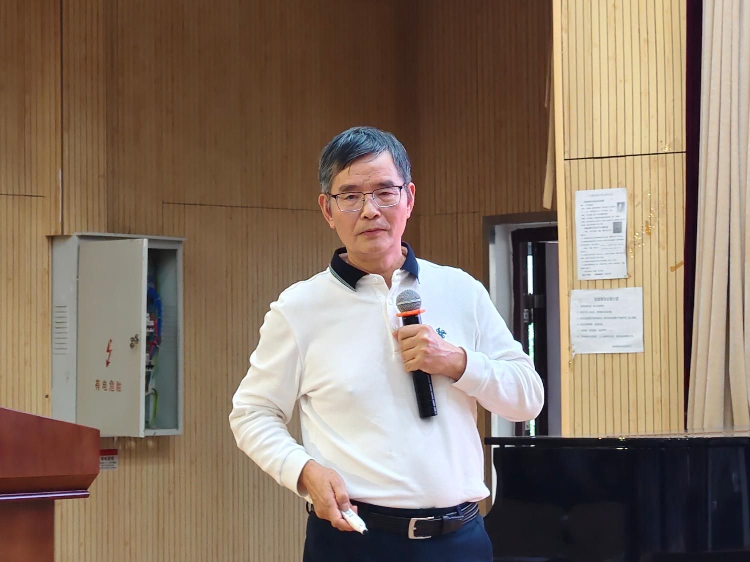 学校原党委副书记陈锦山在讲课