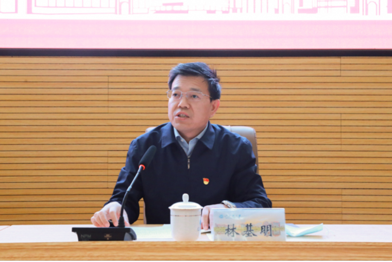 林基明通报了2020年以来学校建设发展取得的成就。他指出,一年来学校克服新冠肺炎的影响,有序推进全面复学复工,确保师生的生命健康安全,在办学规模和层次上实现了新突破,为顺利开启学校”十四五”新征程奠定了坚实的基础。他表示,学校的办学成果凝结着老同志的历史贡献,希望老同志们退休不褪色,继续关心支持学校的建设和发展,为建设海洋特色鲜明的高水平应用型大学贡献力量。(郑毅 摄)